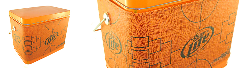 Our client needed creativity for their client Miller-Coors for a Final Four Tournament promotion. SOMADE came to the rescue with a vintage throw-back to a Coca-Cola tin. The outcome: a totally custom tin cooler with a basketball leather wrap.